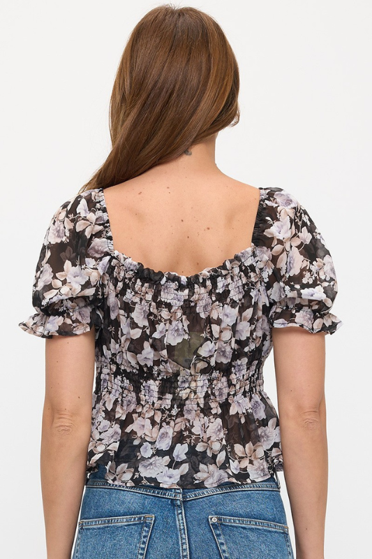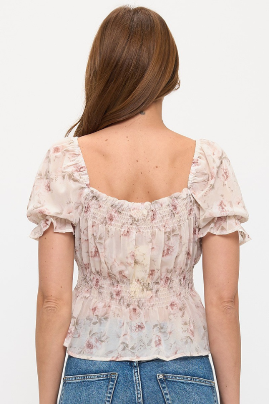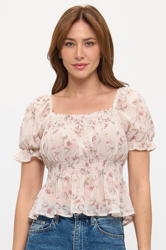 Floral Smocked Waist Babydoll Top